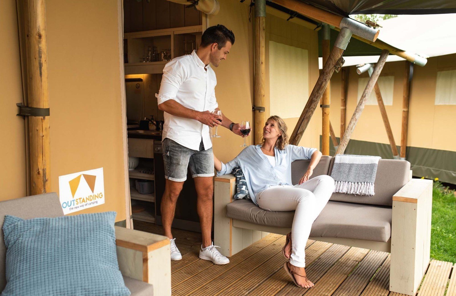 Onze 7 persoons lodges staan op 2 locaties. Drie lodges staan samen met de 4-persoons lodges op één groot veld, waardoor er buiten veel overzicht is en een combinatie van twee of meer tenten mogelijk is.