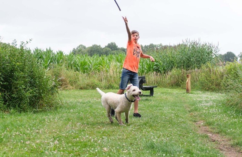 Net buiten de camping met hond is een heerlijk hondenuitlaatveld. Hier kunt u uw hond even heerlijk vrij laten spelen met ander honden. Het hondenuitlaatveld van de camping in Overijssel met hond is volledig omheind zodat uw huisdier vrij kan rondlopen.