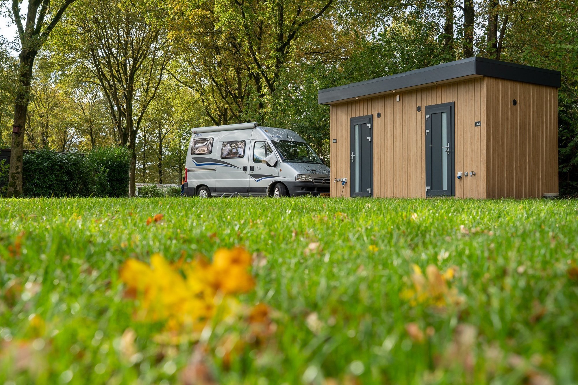Op camping de Pallegarste hebben we twee types kampeerplaatsen met privé sanitair.